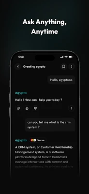 • محادثة ذكية وطبيعية: اسأل egypto عن أي حاجة تخص مصر وهيرد عليك بسرعة وبأسلوب بسيط.