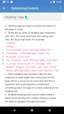 This seo app helps the students to learn the basics of Search Engine Optimization (SEO) in a very easy and step by step manner for FREE & OFFLINE. This SEO course is designed for beginners as well as advanced users who want to increase their expertise in the field of SEO by learning the essential SEO techniques to boost their websites or apps for maximum audience reach.