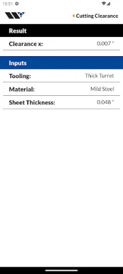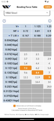 Punching: • Punching force • Cutting clearance • Maximum edge length • Enveloping circle • Pre-punching diameter for countersinks and tapping • Sheet thickness conversions • Sheet weight • Cluster saving Bending: • Bending force • Minimum flange length • V-opening • Spring-back • Radius air-bending • Offset • V-Series Black set-up • Box height • Free space • Bend deduction • Bump bending • Guillotine shearing force • Tool weight Wilson Tool is the global leader in making punching and press brake tools for the sheet metal industry. With more than half a century of expertise in finding solutions for customer challenges and creating innovative products, this app is the result of that experience.